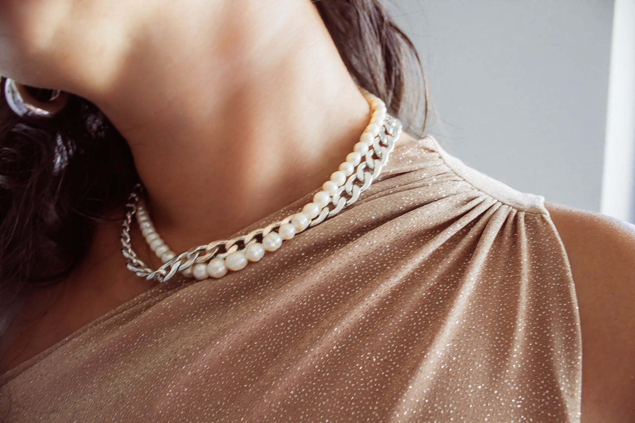 Stretch lurex jersey (polyamide/elastane). Cold hand wash, hang to dry. No tumble/bleach.