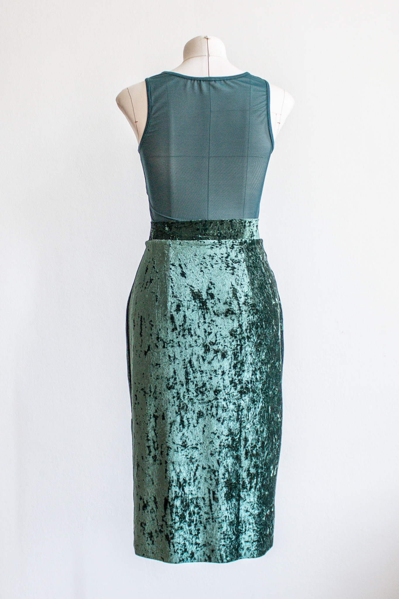 Opaque velvet bust panel + high waistband