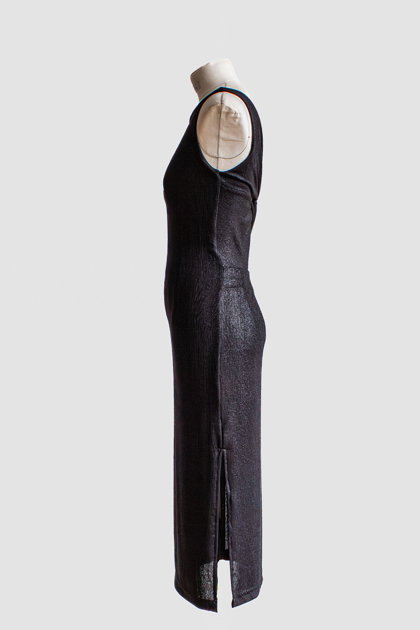 Stretch shimmer lamé jersey (polyamide/elastane). Cold hand wash, hang to dry. No tumble/bleach.